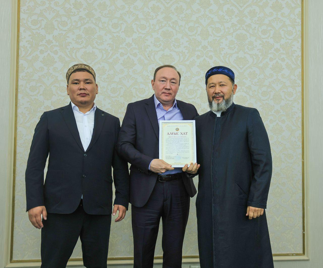 Алғыс хатта мешіттің қоғамдағы орны, ізгілік пен бауырмалдықты дәріптеудегі маңызы атап өтіліп, демеушілерге Алла Тағаладан береке мен сауап тілегі білдірілді.