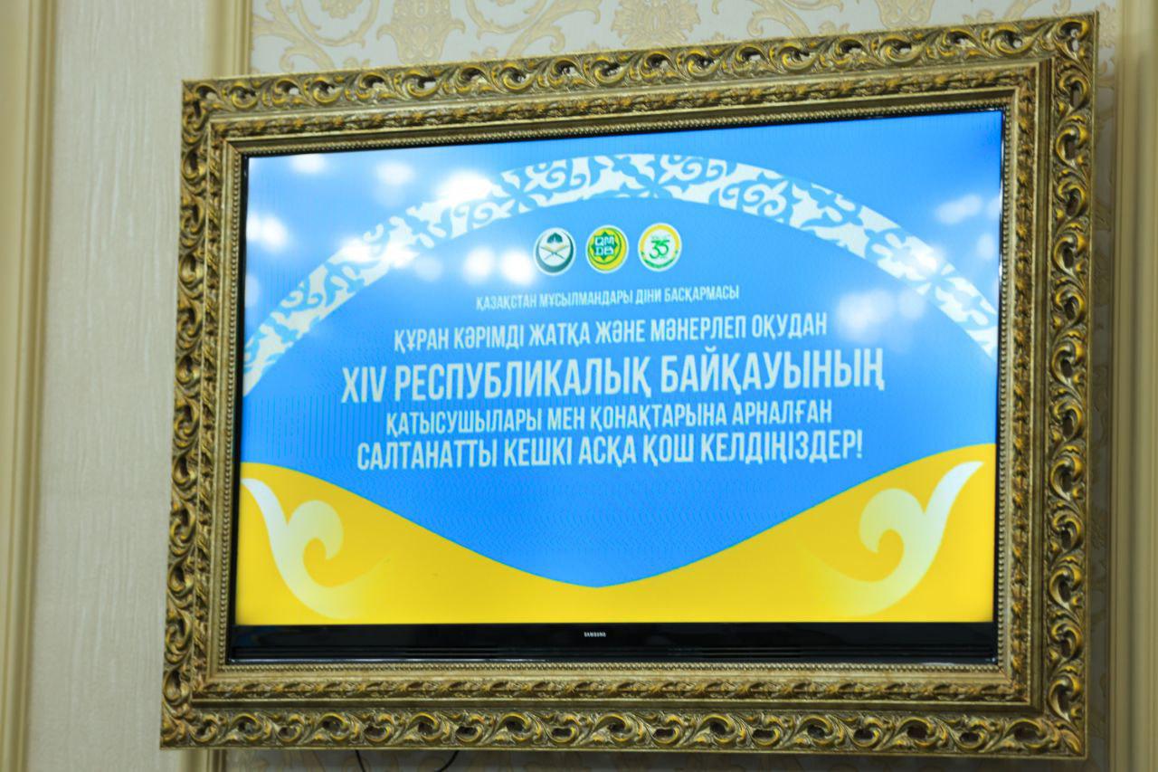 Кеше Талдықорған қаласында өтіп жатқан қасиетті Құран Кәрімді жатқа және мәнерлеп оқу бойынша XIV республикалық байқауының қатысушылары мен қонақтарына Қазақстан мұсылмандары діни басқармасының атынан салтанатты кешкі ас ұйымдастырылды.