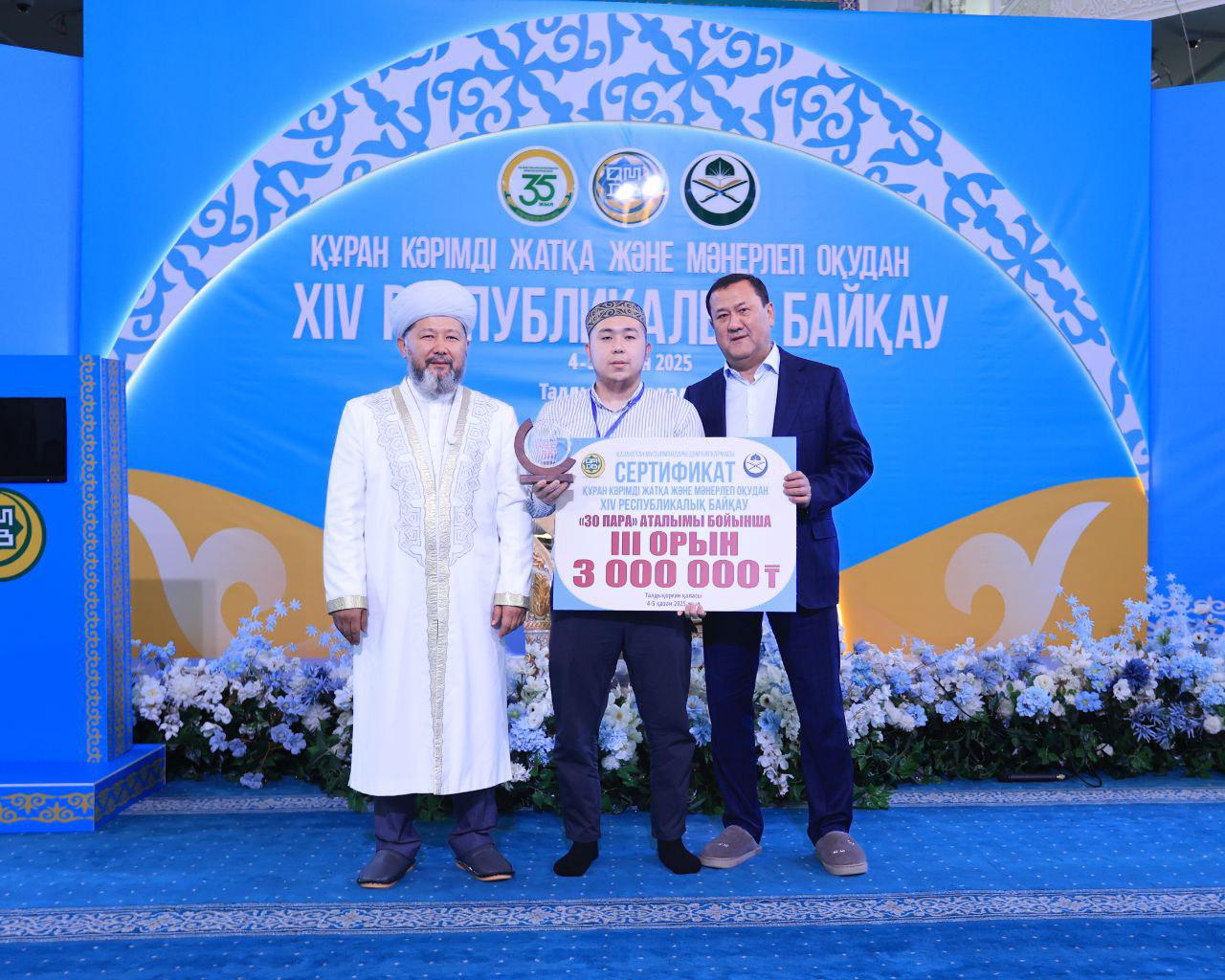 Аллаға сансыз шүкір, елімізде жыл санап қариларымыздың қатары артып келеді. Тәуелсіздік алған жылдары Құран оқи алатын адамдарға төрден орын берсек, одан кейін оның бірнеше парасын жаттап алған, тағы бір кезеңде Құранды толық жаттаған қариларға айрықша құрмет көрсетілді. Ал бүгінгі таңда Құран оқудан ижазасы бар қари көрсек, жүрегіміз елжірейді. Осы байқауды өткізуге демеуші болған Бахаридин Нұғманұлына, Данияр Жұмабаев қариымыз бастаған әділқазы мүшелеріне алғысымды білдіремін. Байқауға қатысқан қариларымыздың бәрі жеңімпаз атанды деп санаймын. Өйткені бұл байқау әрбір қариға үлкен жігер сыйлады. Жүлделеріңіз құтты болсын» деді Бас мүфти марапаттау рәсімінде.