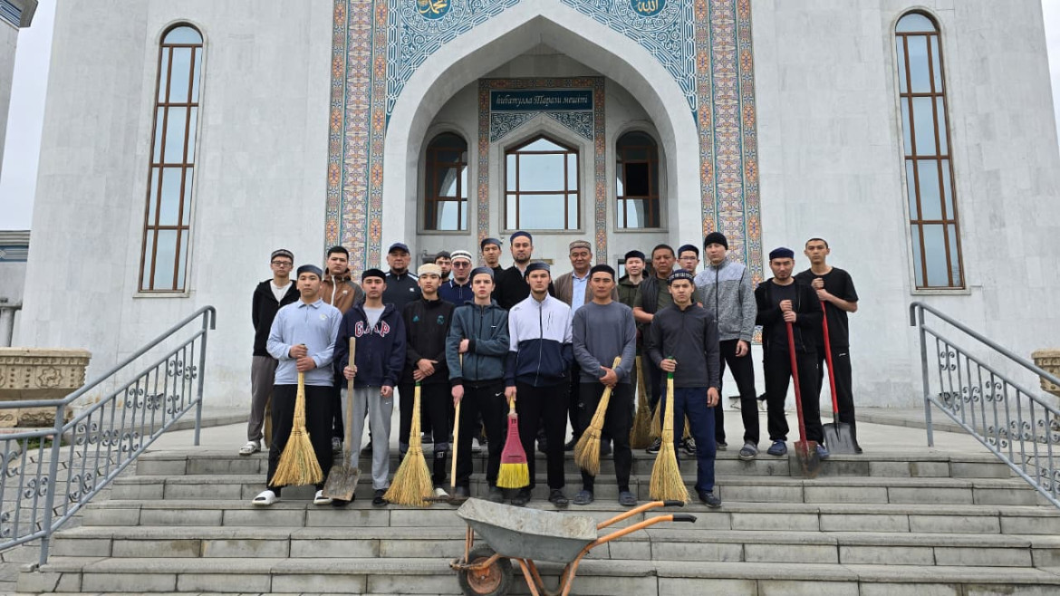 ҚМДБ-ның Жамбыл облысы бойынша бас имамы Асқар Зәкіржанұлы мен оқу орнының директоры Жарбол Ақжігіттің бастамасымен мешіт қызметкерлері, ұстаздар және студенттер бір кісідей жұмылып, ғимараттардың ауласына тазалық жұмыстарын жүргізді. Атап айтқанда, аула аумақтары күл-қоқыстан тазартылып, ағаштар әктеліп, айнала ретке келтірілді. Бұл – тек тазалық шарасы ғана емес, жауапкершілік пен ортақ іске деген жанашырлықтың жарқын көрінісі болды.